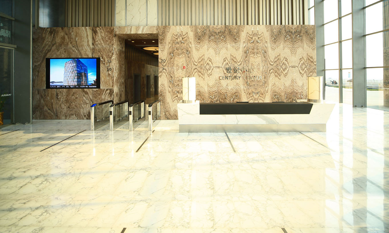 挑高12米豪华大堂,空间通透大度,领袖群伦, 高档石材装修显露高贵典雅之势,彰显非凡商务气派。