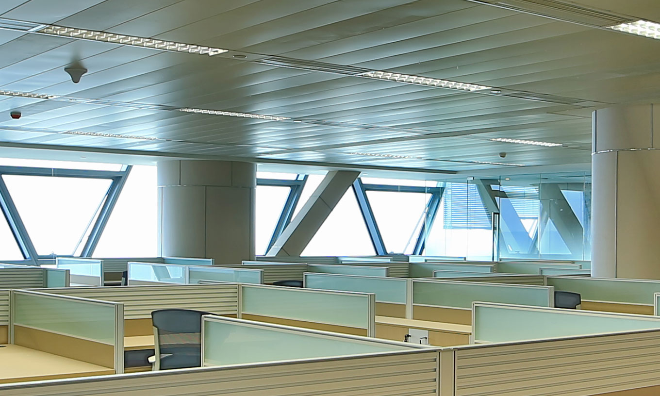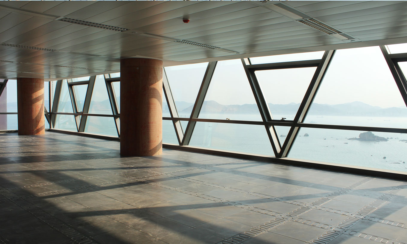 荷兰亨特“乐思龙”金属天花吊顶,赋予高品质空间内涵 网络架空地板设置,满足新商务标准。